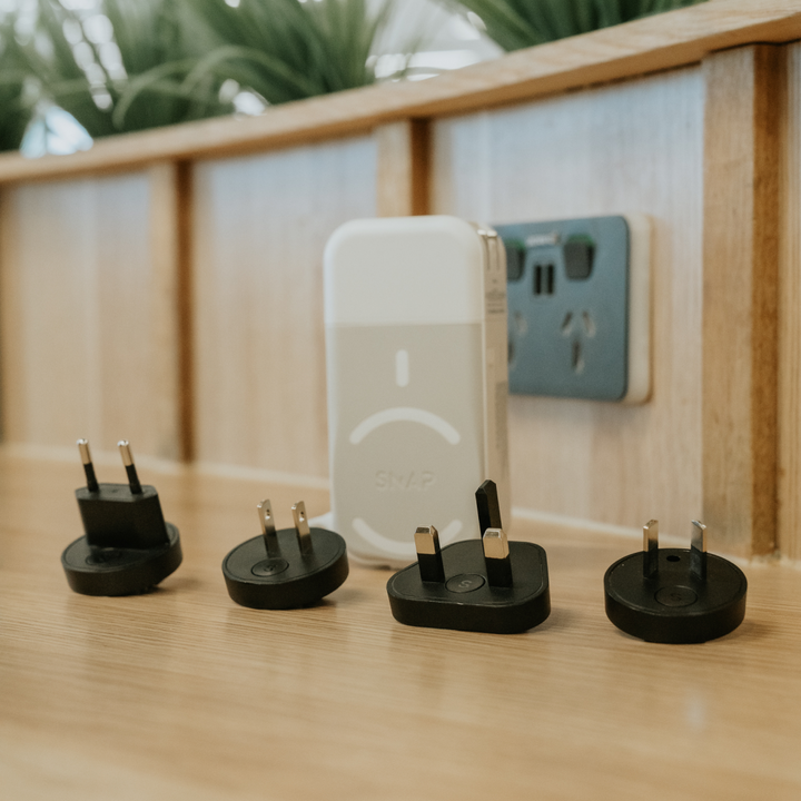 - Interchangeable Adaptors: AU, US, EU & UK.