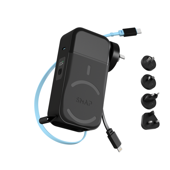 The PowerPack Universal 2 is your ultimate travel essential. It comes with interchangeable adaptors for AU, EU, UK, US and Asia, ensuring you can charge your devices seamlessly anywhere in the world.